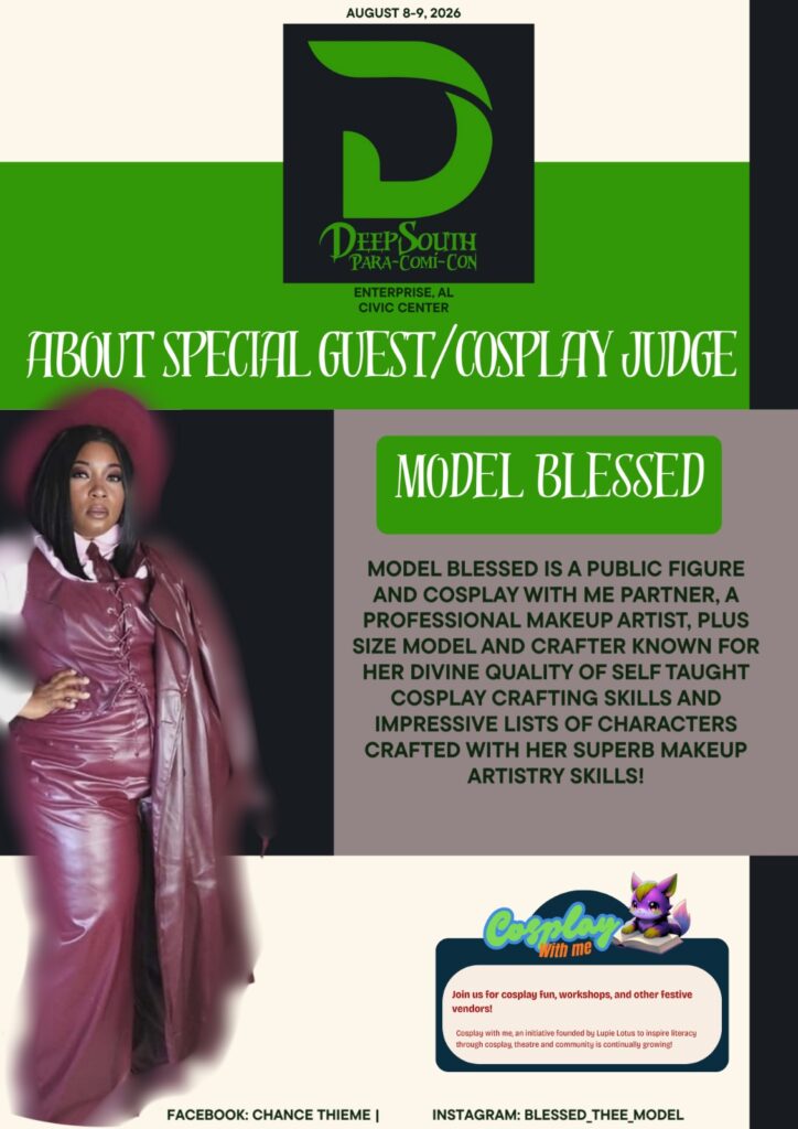 Deep South Para-Comi-Con, a two-day event at the Civic Center in Enterprise, AL offers an affordable, family-friendly experience featuring a wide array of guests, vendors, artists, and fan communities.