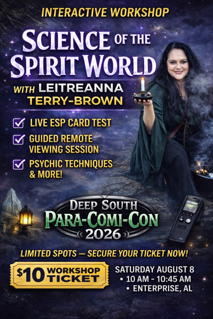 Tickets for the workshops can be purchased prior to the event on the website ticket page or the day of the event at the box office, Webb Paranormal Group Booth, and Leitreanna Terry-Brown’s Booth.